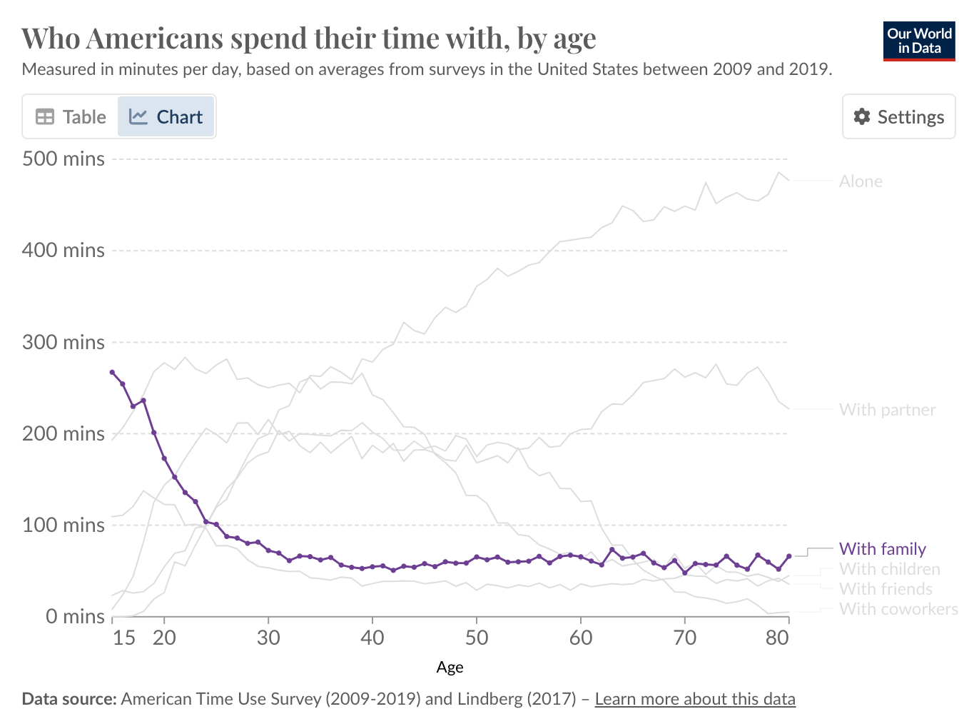 There are six groups of people we spend the most time with. (But the proportions shift dramatically as we age.)